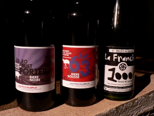 La Brasserie de la Vallée du Giffre est de retour ! Nous gardons quelques jolies choses dans la cave pour le moment, mais voici déjà la Art. 63, une rousse légère, au nez floral à peine teinté de caramel, bien sèche, fruitée et amère, ainsi que la Robust Porter, un bière noire au nez floral mais aux arômes secs et grillés. Les deux sont dispo en grandes et en petites bouteilles.